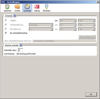 In dem Menü Schedule bestimmt der Nutzer einen Zeitpunkt, zu dem das Plug-In regelmäßig Sicherungen erstellt. Die Hauptfunktionen Sicherung erstellen und Wiederherstellen erreicht man ebenfalls über das Firefox-Menü Extras.