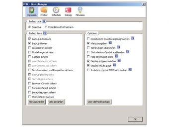Der Anwender ruft FEBE über einen zusätzlichen Eintrag im Firefox-Menü Extras auf und passt die Einstellungen nach seinen Anforderungen an. Die Freeware speichert neben installierten Plug-Ins unter anderem auch Lesezeichen, Chronik, Benutzernamen und Passwörter. FEBE sichert automatisch oder manuell.